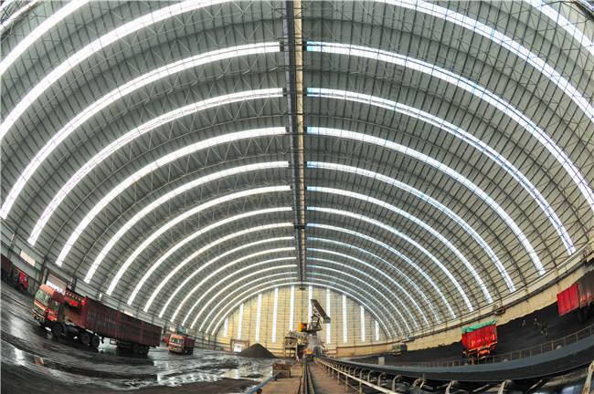 堆场料场封闭式主体结构为新型的钢玉树网架结构,维修结构为玉树钢结构玉树不锈钢板和纤维增强塑料灯具,其外形以玉树网架式和平板为主,连接柱玉树施工自由,设置喷雾自动喷水系统,从而可以实现棚内所有物料的覆盖,减少物料在运输过程中的损耗,起到防尘的作用,减少工厂关闭后的二氧化硫排放量,50mg/m3颗粒排放量小于10mg/m3,非常适合低能耗。低闭库自动感应反应对库存轮胎进行清洁,确保轮胎不受道路污染;封闭的储存区可从源头控制粉尘污染,控制无序排放。